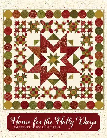 Enjoy being Home for the Holly Days with a new quilt pattern by Kim Diehl! This quilt radiates Christmas cheer from the medallion star center and continues to shine with the surrounding blocks and Snowball border. Each block is designed to symbolize an element of Christmas.